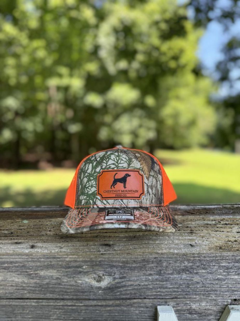 CHESTNUT MTN FEED RICHARDSON HAT(CAMO/ORANGE) RECTANGLE LOGO