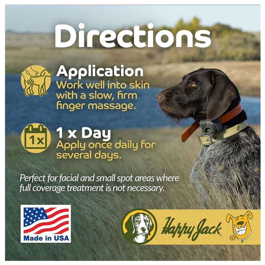 Our Dermacide Ointment is our same 50-year-old proven mange medicine formula, but in a creamy ointment. It’s perfect for facial and small spot areas where full coverage treatment is not necessary. Use it on mange mite infestations, itching eczemas, fungus infections such as hot spots, dermatitis, falling hair, plus skin irritations of all kinds. Dermacide adheres to the dog’s skin and stays in place once applied.