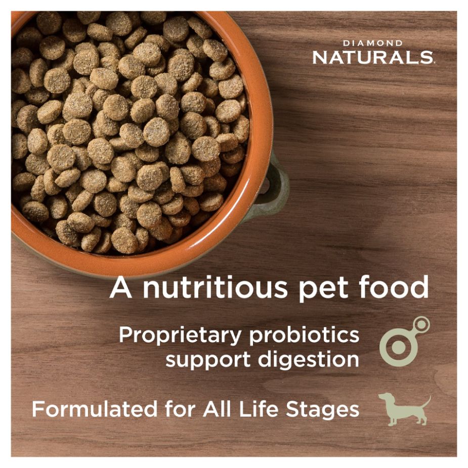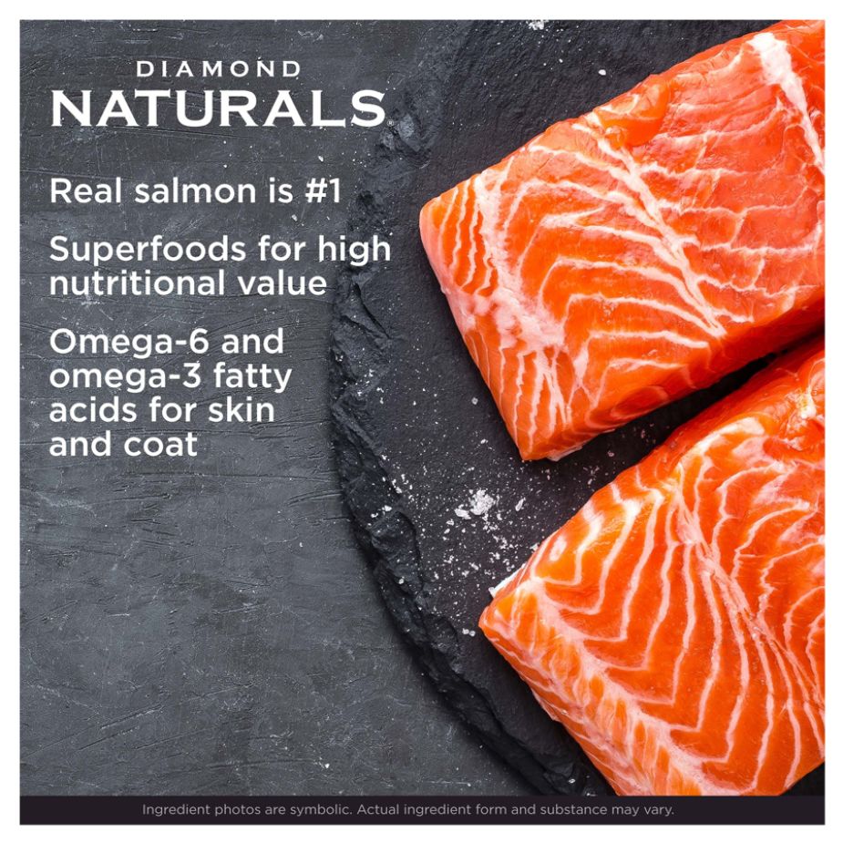 - Diamond Naturals Skin and Coat All Life Stages Salmon and Potato dry dog food; REAL SALMON is the #1 ingredient; from puppy to senior, this formula helps maintain healthy skin and coat