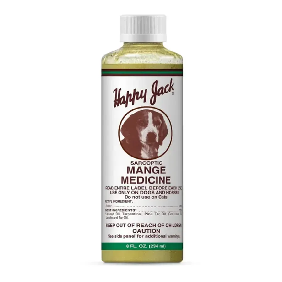 Happy Jack Mange Medicine is a specialized topical solution designed to address severe skin conditions in dogs and horses. Formulated with a soothing base of pure vegetable oil, cod liver oil, and lanolin, this treatment is effective against stubborn cases of mange, fungi, eczema, hot spots, and other skin irritations. Its powerful 28% sulfur concentration tackles the root causes of skin infections, promoting rapid healing and restoring your pet’s healthy coat. Trusted by pet owners, it’s a go-to remedy for a wide range of skin ailments.