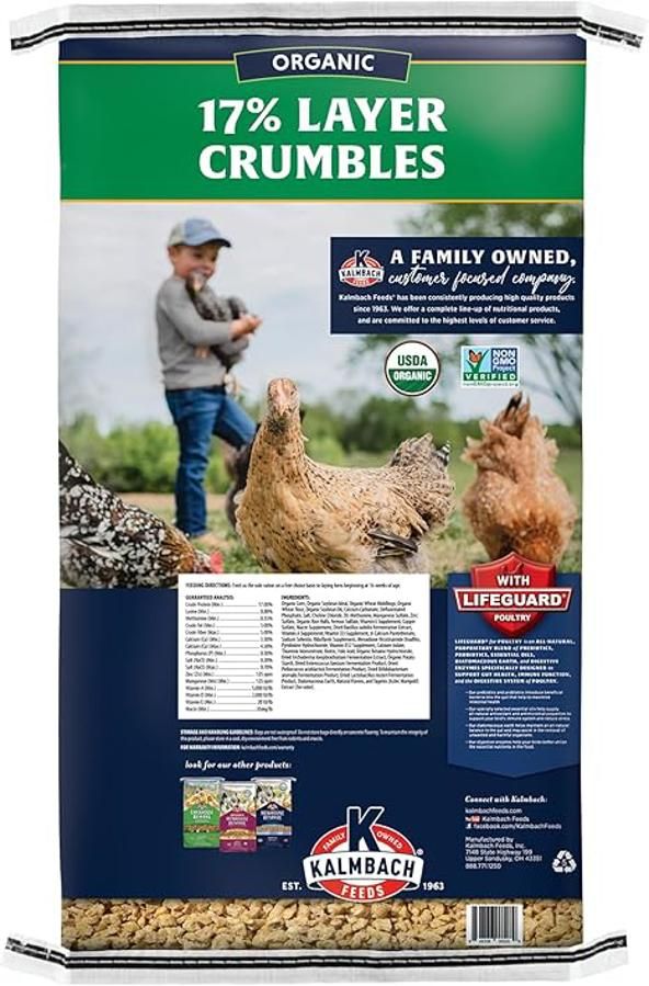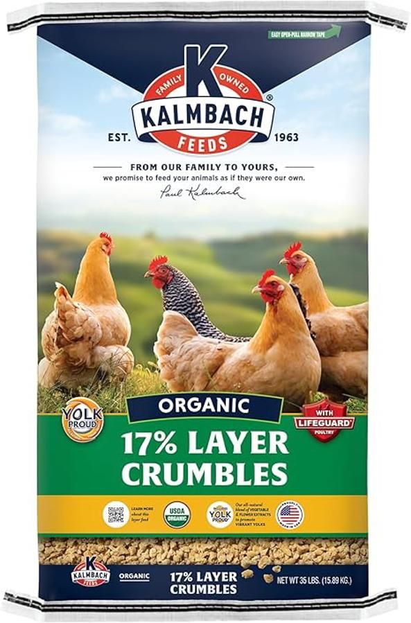 Meet all of your hen’s nutritious needs with Kalmbach Feeds Organic Harvest 17% Protein Layer Crumbles Chicken Feed. This balanced feed is made with a proprietary blend of nutrients to help support your laying hen’s digestive and immune systems. Plus, with good nutrition comes great eggs— each bag contains amino acids, calcium and other ingredients to promote strong shells and tasty, bright yolks. This feed is USDA-certified organic and comes in tempting crumbles.