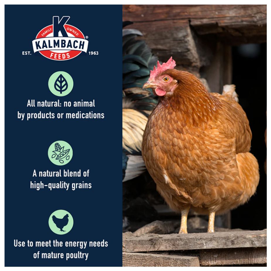 A scratch grain formulated to supplement all classes of mature poultry.
