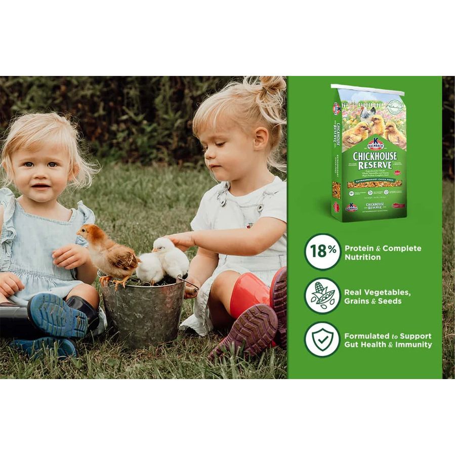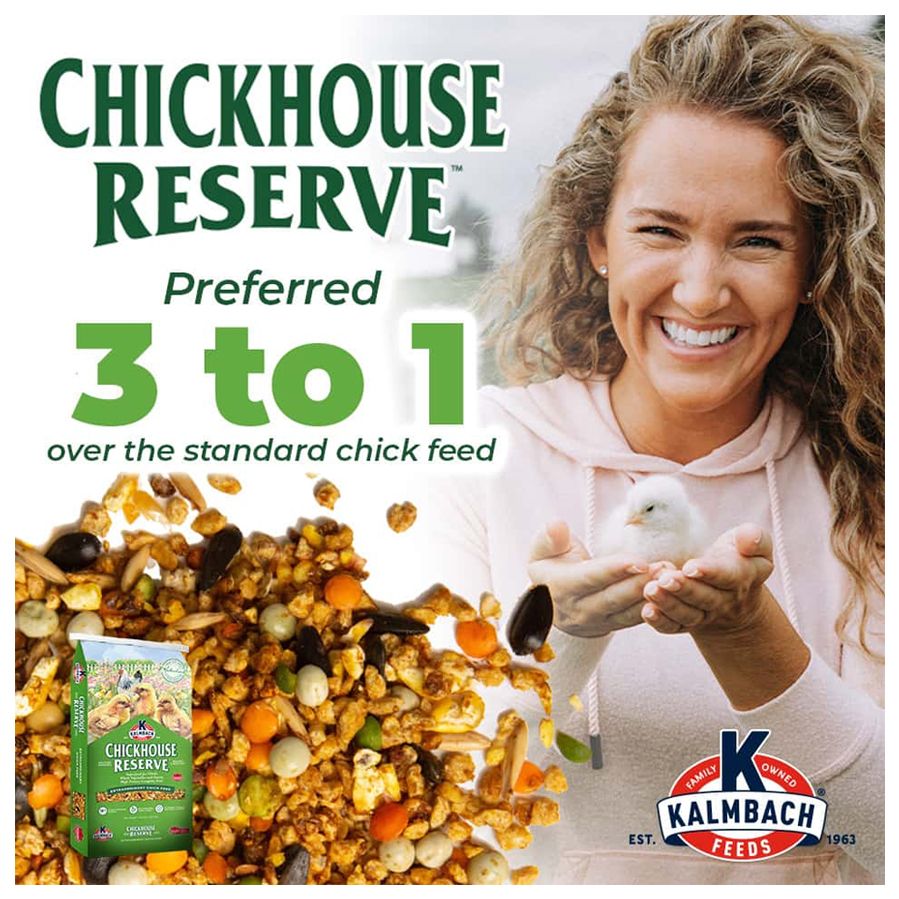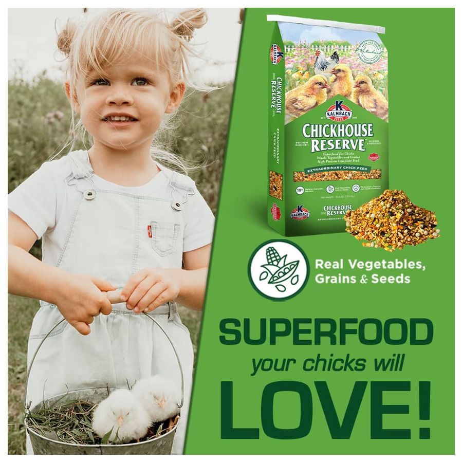 A complete starter/grower chick feed made with whole seeds, vegetables and grains. Chickhouse Reserve® is formulated to meet all the nutritional requirements of your chicks!