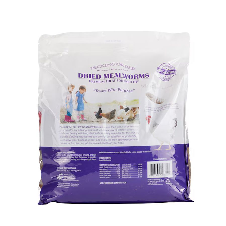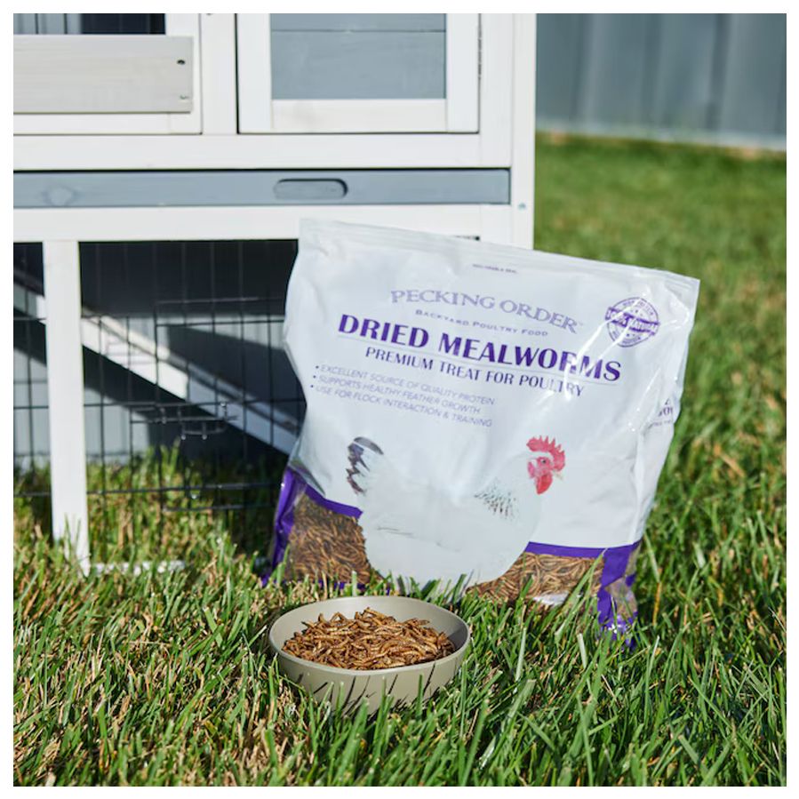 If you’re hens could pick any treat, dried mealworms from Pecking Order™ would be their first pick to peck. Our 100% dried mealworms are always a flock favorite treat, especially when hens are foraging for a natural protein source but insects are scarce.