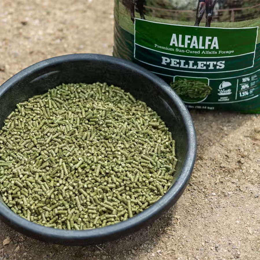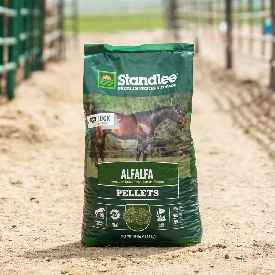 Standlee Premium Western Forage Alfalfa Pellets are made from high-quality sun-cured forage formed into ¼ inch hay pellets that are easy to measure and feed. Standlee Alfalfa hay is high in protein to support active and growing horses and low in carbohydrates, making it an excellent option for carb-sensitive animals.