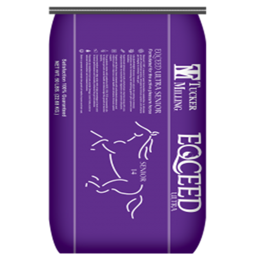 Eqceed Ultra Senior is formulated for older horses as well as those with digestive issues or poor teeth. Feed with good quality free-choice hay or pasture. Start with 10-12 lb of feed and adjust up or down to maintain a good body condition. Do not feed more than 5 lb in one meal. For horses prone to choking, with poor teeth, or those otherwise needing softer feed, Eqceed Ultra Senior can be softened with warm water or soaked to form a wet mash. Try adding one cup of water to every 2 to 3 lb of feed 10 to 15 minutes prior to a meal. The amount of water can be adjusted as needed. Always provide plenty of fresh, clean water and free-choice salt. Store feed in cool, dry conditions to prevent spoiling. Inspect feed for freshness and for mold and insect contamination daily. Feed within 30 days of manufacturing date for best results.