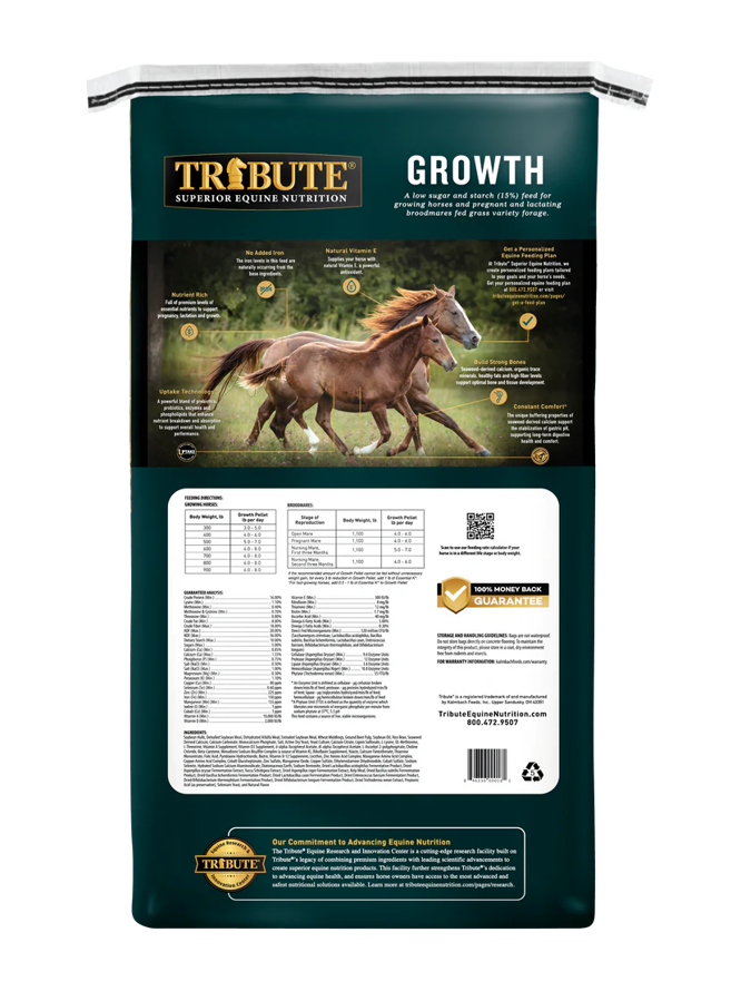 - Seaweed-derived calcium, organic trace minerals, healthy fats, and high fiber levels support optimal bone and tissue development for your growing horse.