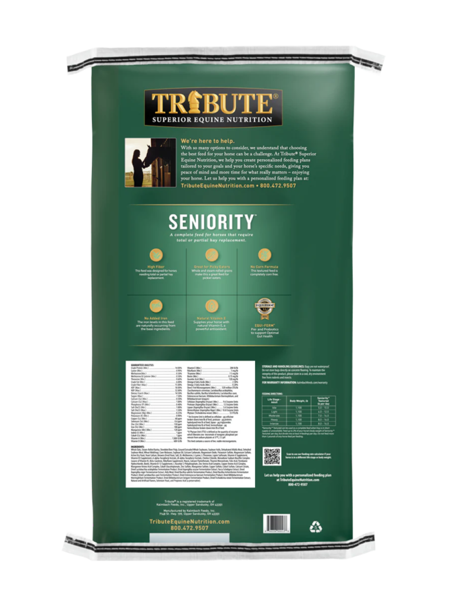 Whole Oats, Steam-Rolled Barley, Shredded Beet Pulp, Ground Extruded Whole Soybeans, Soybean Hulls, Dehydrated Alfalfa Meal, Dehulled Soybean Meal, Wheat Middlings, Cane Molasses, Soybean Oil, Calcium Carbonate, Magnesium Oxide, Potassium Sulfate, Magnesium Sulfate, Active Dry Yeast, Yeast Culture, Brewers Dried Yeast, Salt, DL-Methionine, L-Lysine, L-Threonine, Lignin Sulfonate, Vitamin A Supplement, Vitamin D3 Supplement, d-alpha-Tocopheryl Acetate, dl-alpha-Tocopheryl Acetate, Choline Chloride, Menadione Sodium Bisulfite Complex, Beta-Carotene, Riboflavin Supplement, Niacin, Calcium Pantothenate, Thiamin Mononitrate, Folic Acid, Pyridoxine Hydrochloride, Biotin, Vitamin B-12 Supplement, Esters of L-Ascorbic Acid, Zinc Amino Acid Complex, Copper Amino Acid Complex, Manganese Amino Acid Complex, Cobalt Glucoheptonate, Zinc Sulfate, Manganese Sulfate, Copper Sulfate, Cobalt Sulfate, Calcium Citrate, Dried Lactobacillus acidophilus Fermentation Product, Dried Aspergillus oryzae Fermentation Extract, Yucca Schidigera Extract, Dried Aspergillus niger Fermentation Extract, Kelp Meal, Dried Bacillus subtilis Fermentation Product, Dried Bacillus licheniformis Fermentation Product, Dried Lactobacillus casei Fermentation Product, Dried Enterococcus faecium Fermentation Product, Dried Bifidobacterium thermophilum Fermentation Product, Dried Bifidobacterium longum Fermentation Product, Dried Trichoderma reesei Extract, Natural and Artificial Flavors, Selenium Yeast, and Propionic Acid (a preservative)