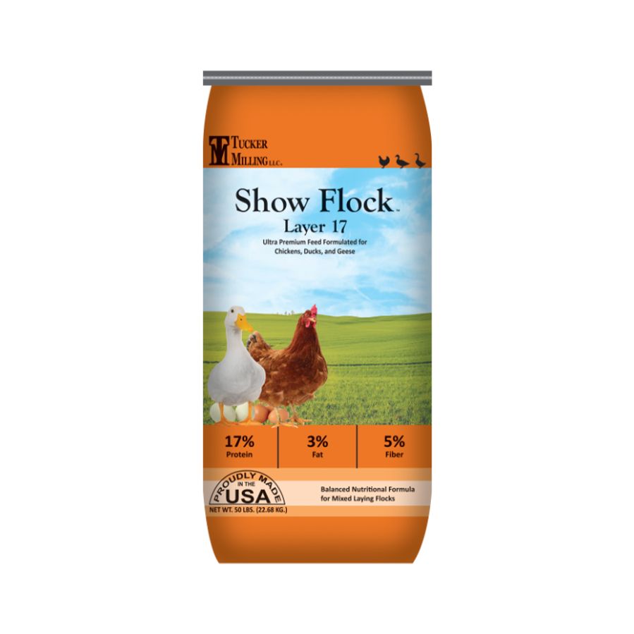 Feed free choice to laying chickens, ducks, and geese once the first egg appears (18-24 weeks).