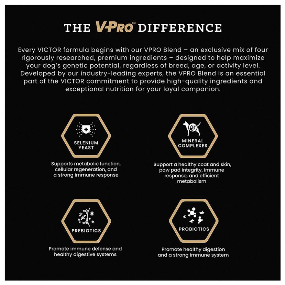 - Made with Victor’s unique VPRO Blend – an exclusive mix to promote superior digestibility and immune system function